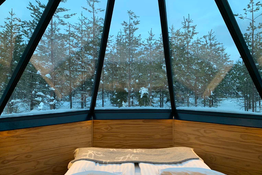 40 igloos—Aurora cabins—are located in the wintry forest. They are glass-roofed so that guests can wrap up in a blanket and enjoy the breathtaking views of the Milky Way, the North star and the Northern lights.